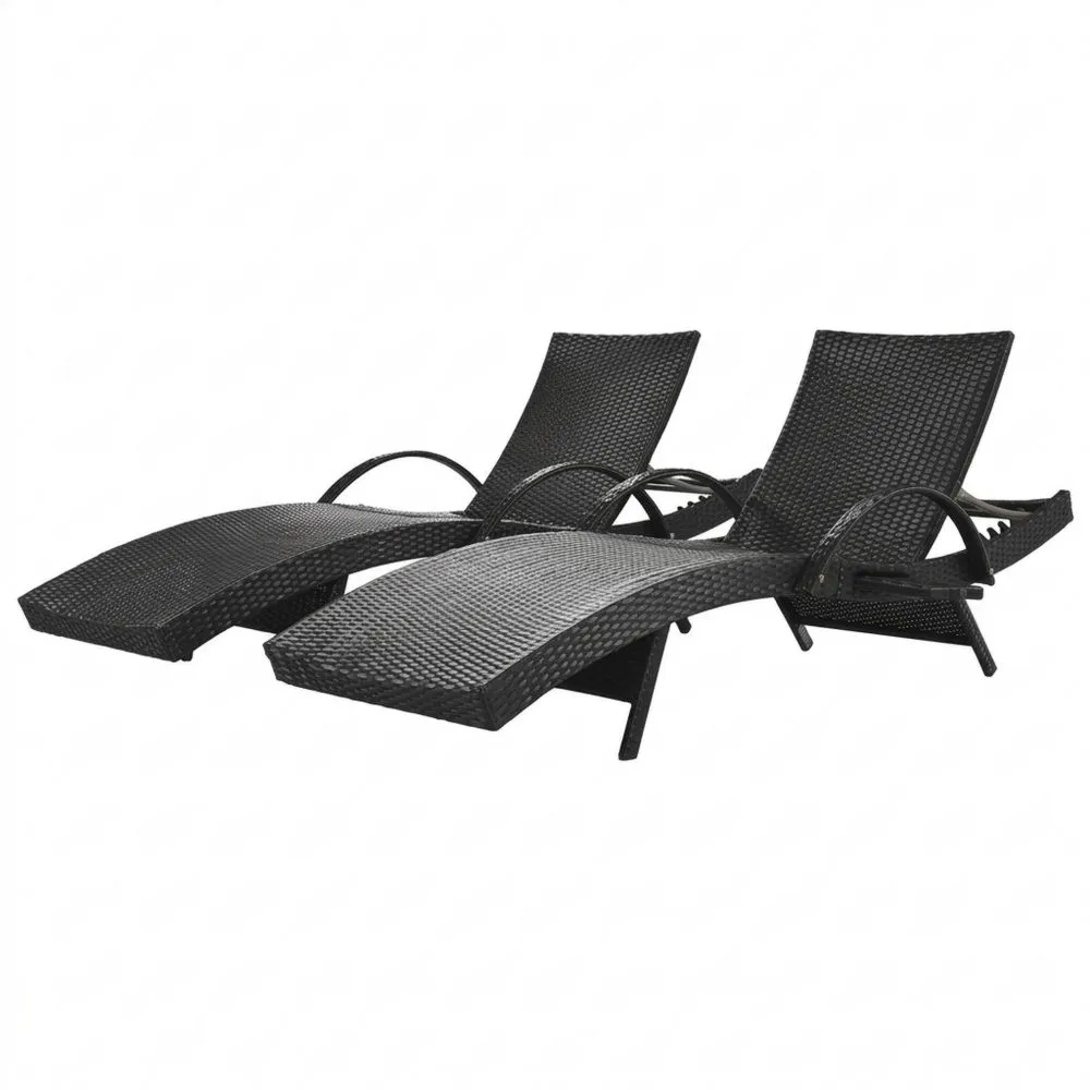2er Set Rattan Sonnenliegen Schwarz