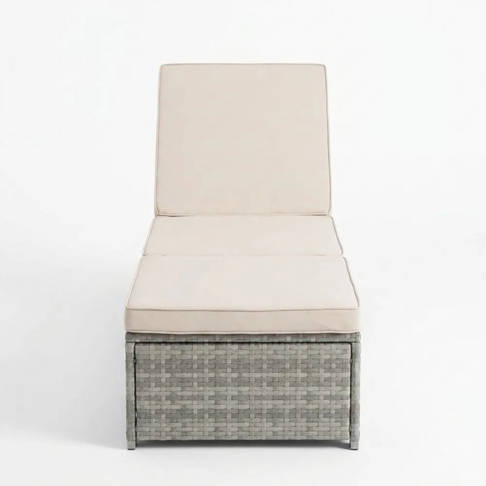 Rattan Gartenliege mit Verstellbarer Rückenlehne und Grauem Kissen