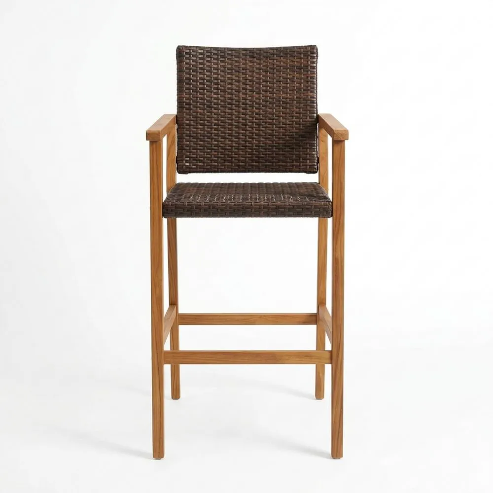 Barstuhl Teakholz Braun Polyethylen Rattan