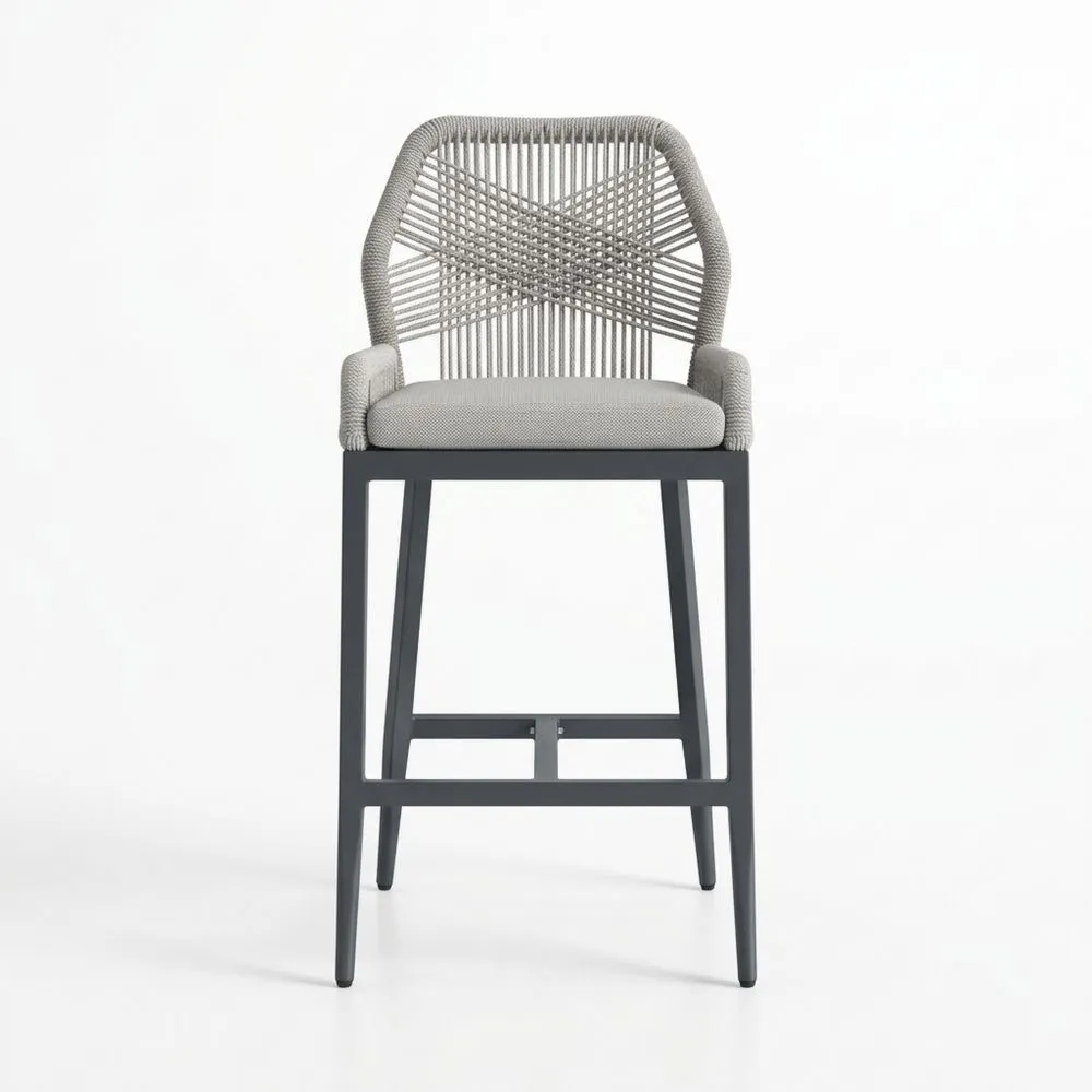 Barhocker mit Geflecht und Aluminiumrahmen in Grau