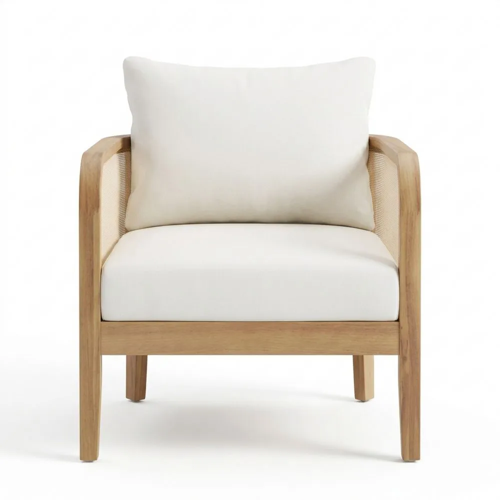 Produktliste: 1 Holzsessel, 1 Sitzkissen, 1 Rückenkissen