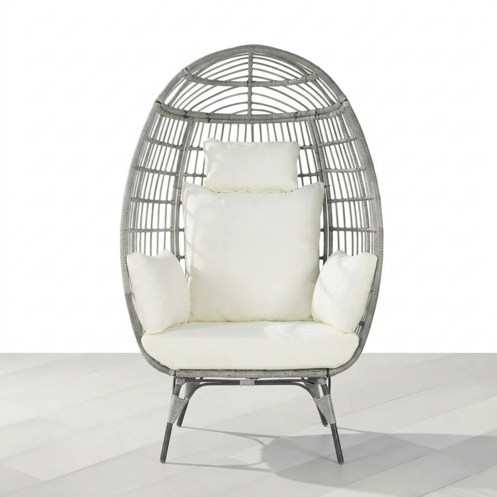 Eierstuhl aus Rattan mit Kissen Stahl Grau Weiß