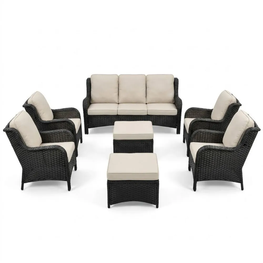 Gartenmöbel-Set 7-teilig Polyrattan Schwarz/Beige