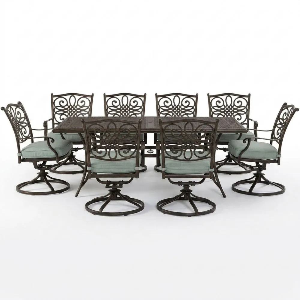 Set-Inhalt: 1 Tisch, 8 Stühle mit Polsterung