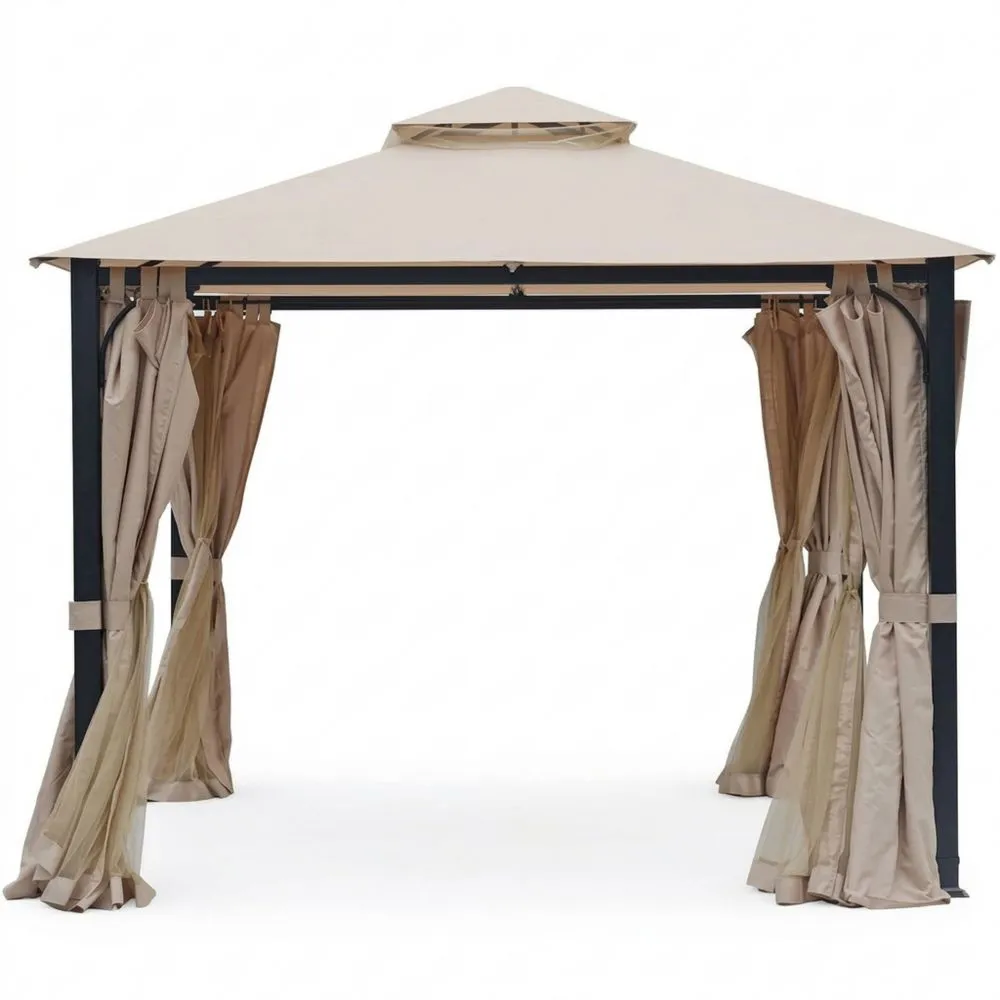 Pavillon aus pulverbeschichtetem Stahl mit beigefarbenem Polyesterdach 300x300 cm