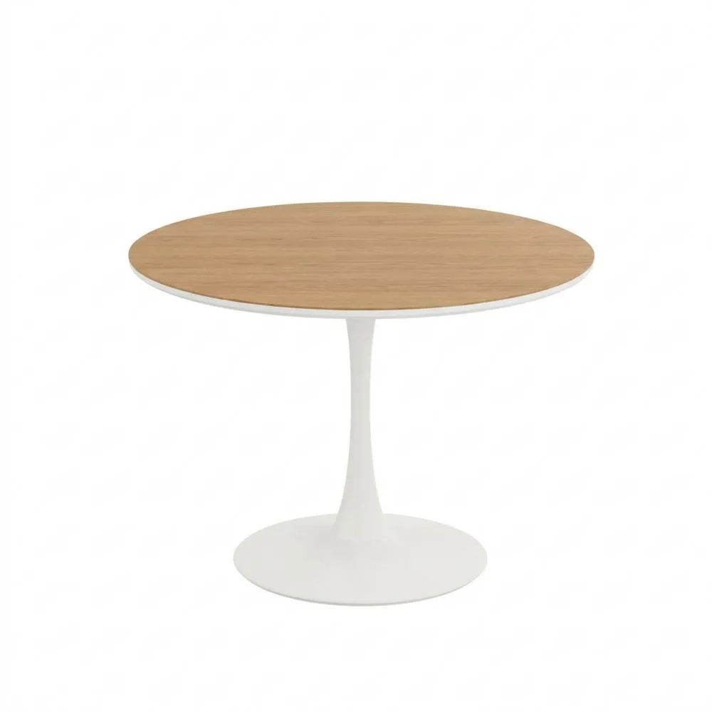 Runder Esstisch aus MDF mit Holzfurnier und weißem Stahlfuß